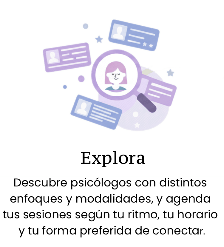 Descubre psicólogos con distintos enfoques y modalidades, y agenda tus sesiones según tu ritmo, horario y el formato que prefieras: online o presencial.